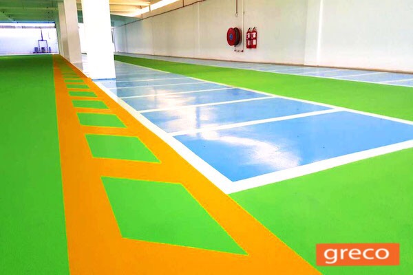 GrecoFloor® industrial flooring systems include epoxy coating (GrecoFloor 100 Finish, GrecoFloor WB500 Finish, GrecoFloor LV700 Finish, GrecoFloor SF230 Finish), self-smoothing epoxy topcoat (GrecoFloor SF200 Finish, GrecoFloor Deko SF200), anti-static epoxy coating (GrecoFloor SF230 AS Finish), epoxy mortar screed (GrecoFloor SF300 Mortar), polymer floor topping (GrecoFloor Topping, GrecoFloor-Leveltop) and polyurethane (PU) screed.